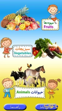 اپلیکیشن بچههای ایرانی در راستای آموزش حیوانات، میوهها، سبزیجات و ... به صورت کاملاً مصور به کودکان (با کمک بزرگترها) آماده گردیده است.