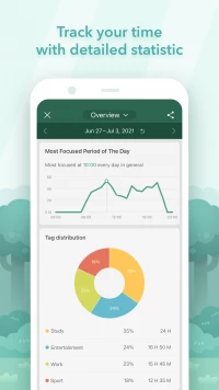 انگیزه و گیمیفیکیشن - با هر درختی که نشان دهنده تلاش شماست، جنگل خود را رشد دهید. - با متمرکز ماندن و باز کردن قفل درختان شایان ستایش، جوایزی کسب کنید!