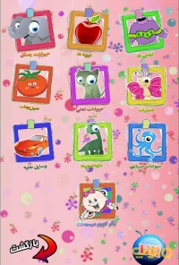 این بازی دارای چندین موضوع آموزشی است که تمامی این موضوعات دارای تصاویر کارتونی، صوت، اسامی فارسی و انگلیسی هستند.