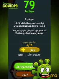 تا اینجا خبری از پیام مثبت رایج بازیها نیست و شما باید در نقش ویروس کرونا به داخل بدن انسانها نفوذ کرده و آنها را آلوده کنید. اما زمانی که بازی به اتمام میرسد و بهدلیل رعایت فاصله یا زدن ماسک (رعایت نکات بهداشتی) موفق نشوید، بازی به شما این پیام را میدهد که حتی یک نفر هم میتواند زنجیره انتقال ویروس را بشکند.