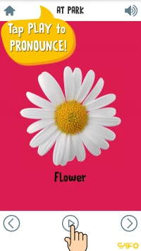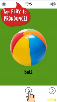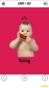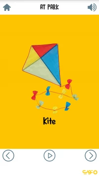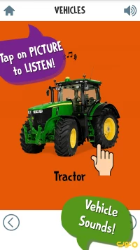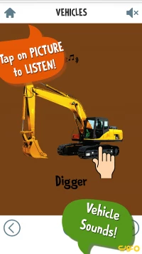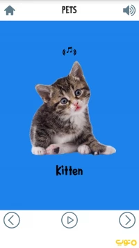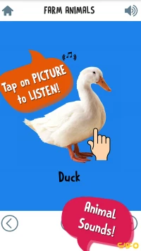 هر موضوع دارای تصاویر و صدا است. صوت هر کلمه وجود دارد و برای حیوانات صدای آنها نیز با اشاره روی تصویرشان پخش میشود.