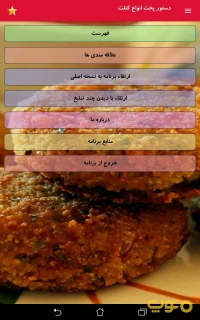 اپلیکیشن «دستور پخت انواع کتلت» برنامه ای جامع و کامل برای آموزش و پخت انواع کتلت ها می باشد. در این برنامه لیست کاملی از انواع کتلت ها گنجانده شده است که با انتخاب هر دستور می توانید مواد لازم،یک تصویر کلی از کتلت آماده شده، زمان آماده سازی، زمان انتظار برای پخت، حجم غذای تولیدی به تعداد نفر، درجه سختی، نحوه آماده سازی مواد اولیه و هم چنین مراحل آماده سازی و پخت را مشاهده نمایید.