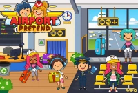 فرودگاه بازی یک بازی کودکانه است که از نوع بازیهای نقش بازی بوده و کودک میتواند با آدمکهای عروسکی وارد فضای فرودگاه شود و بخشهای متنوع آن را تجربه کند. میتواند شخصیتهای آدمکی را از بین زن و مرد و بچه انتخاب کرده و وارد صفحه کند و آنها را روی صندلیهای هواپیما بنشاند. چمدان را در بخش کنترل بار قرار دهد و با استفاده از قوه تخیل خود و بهطور آزادانه بازی نماید.