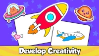 برای حالت ۱+ سال و عدم پیچیدیگی، این قابلیت در نظر گرفته شده که با اشاره روی بخشهای مختلف شکل، بصورت خودکار آن بخش پر شود. اما در حالت ۳+ کودک باید مداد را روی صفحه بکشد و خودش رنگ را کامل کند. چندین نوع قلمو، برچسب و تصویر پس زمینه وجود دارد که در نقاشی و رنگآمیزی به کودک کمک میکند طرح را زیباتر کند.