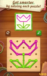 به سادگی گیرهها را بکشید و خطوط متصل بهم را در طرحهای رنگارنگ شگفت انگیز مانند گربه، موشک، گل و بسیاری موارد دیگر مرتب کنید.