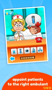 او باید بیماران را با ماشین آمبولانس به مرکز پزشکی منتقل کند و در آنجا بیمار را مداوا نماید. هر بیمار مشکل متفاوتی دارد. از جمله دندانپزشکی ،عکس برداری، آزمایش، چشم پزشکی و ... مشکل بیماران را برطرف کنید و سلامتی را به آنان بازگردانید.