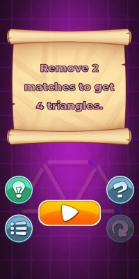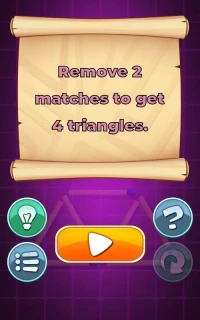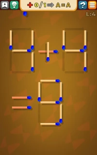 با جابهجایی، اضافه کردن و کم کردن چوب کبریتها معماهای بازی را حل نمایید. در هر مرحله یک نتیجه از بازیکن درخواست میشود. مثلاً باید طوری چوب کبریتها را تغییر دهید که در صفحه ۴ مثلث باقی بماند. یا کاری کنید که جواب دو طرف مسأله ریاضی برابری کند. بازی شامل ۱۵۰۰ مرحله است که در هر کدام باید با ایجاد تغییر در چوب کبریتها معما را حل کنید.