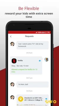 - امکان ارسال درخواست از سوی کودک برای کسب اجازه به دسترسی به یک برنامه یا سایت