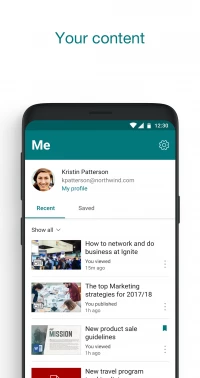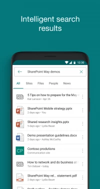 • سایت ها، فایل ها، افراد و موارد دیگر خود را مرور کنید تا به آنچه روی آن کار می کردید برگردید • از جستجو برای یافتن و کشف محتوای مهم استفاده کنید • به نمای شخصی خود از سایت های تیم، سایت های ارتباطی و پست های خبری دسترسی داشته باشید • روی یک کاربر ضربه بزنید تا به کارت تماس او برسید و ببینید با چه کسی کار می کند و روی چه چیزی کار می کند • در حال حرکت پست های خبری ایجاد کنید و به روز رسانی ها، گزارش ها، وضعیت و تجربیات خود را با تیم خود به اشتراک بگذارید • وارد سایت های شیرپوینت خود شوید، چه در فضای ابری باشند و چه در محل. این برنامه با SharePoint Online و SharePoint Server نسخه های 2013 و بالاتر کار می کند • چندین حساب اضافه کنید و به راحتی بین آنها جابجا شوید