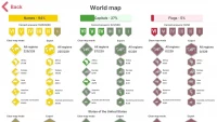 در قسمت نقشه میتوانید یک نقشه واضح از کل کشورهای دنیا را مشاهده کنید و بر روی هر منطقهای که خواستید بزرگنمایی (زوم) کنید. با کلیک روی نقشه هر کشور، پرچم و نام آن به انگلیسی نمایش داده میشود. اگر روی علامت فلش کناری کلیک کنید اطلاعات بیشتری شامل پایتخت، جمعیت، مساحت، واحد پولی، زبان و نوع حکومت آن خواهید دید. اگر روی دکمه T شکل کلیک کنید، نام کشورها بر روی نقشه فعال و غیر فعال میشود.