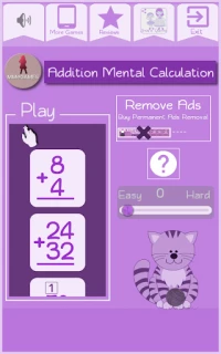 بازی محاسبه ذهنی جمع اعداد برای کودکان کلاس اول و برای آن دسته از کودکان و نوجوانانی است که میخواهند عملکرد ریاضی خود را بهبود بخشند. ■ جمع یک رقمی: برای کودکانی که جمع زدن اعداد را تازه یاد گرفتهاند. ■ جمع بدون رقم نقلی: کودکانی که هنوز محاسبه رقم نقلی را یاد نگرفتهاند ، ممکن است این روش را برای بهبود عملکرد و تمرین بهتر ذهن خود انتخاب کنند. ■ جمع با رقم نقلی: این سطح برای افرادی در نظر گرفته شده است که از قبل قادر به محاسبه رقم نقلی هستند و میخواهند به سطح خوبی از محاسبه ذهنی ریاضی برسند.