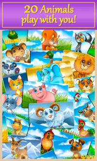 در این بازی حیواناتی از جمله اسب، سگ، گربه، اردک، قوچ، خروس، بز، موش، گاو، خرس، مار، میمون، سنجاب، پنگوئن، شیر، مرغ، خوک، ببر، طوطی و فیل هستند که کودک میتواند با تماس گرفتن صدایشان را بشنود.