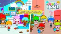 نقش بازی کودکانه در خانهای دو طبقه با اتاقهای رنگارنگ و زیبا.