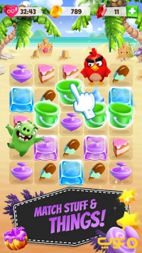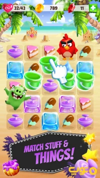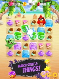 در این بازی باید شکلهای همرنگ را کنار هم قرار دهید و از بین ببرید، با تقویتکنندهها ردیفها را پاکسازی کنید و خود را برای مراحل زیاد این بازی آماده کنید. مانند بقیه ی پازل های جورکردنی، Angry Birds Match داستان ندارد. به جای آن شما تلاش میکنید سه تکه یا بیشتر را در یک ردیف کنار هم قرار دهید. به هر حال مانند تمام بازیهای پرندگان خشمگین، پرندههای سمج، متعصب و ضد خوک دارد.
