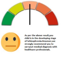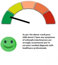آزمایش فوق فقط ارزیابی کودک را ارائه می دهد. این یک تجزیه و تحلیل پایه ای از کودک است. ما قویاً توصیه می کنیم که به طور مداوم با متخصصان مراقبت های بهداشتی مشورت کنید. آزمایش فوق هیچ نسخه ای از دارو را توصیه نمی کند. این آزمایش فقط نشان دهنده اسکیزوفرنی است.