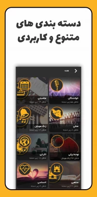 در این نسخه برنامه آهنگ ها در متنوع ترین دسته بندی ها قرار گرفته اند، دسته بندی هایی مانند: