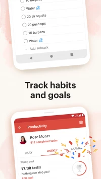 از Todoist برای موارد زیر استفاده کنید: • از لحظه ای که وظایف در ذهن شما ظاهر می شود، آنها را ضبط و سازماندهی کنید. • ضرب الاجل ها را با یادآوری ها و سررسیدها به خاطر بسپارید. • با سررسیدهای تکراری مانند "هر دوشنبه" عادات پایدار بسازید. • پروژه های خود را به سبک کانبان با تابلوها سازماندهی کنید. • با واگذاری وظایف به دیگران در پروژه ها همکاری کنید. • وظایف خود را با سطوح اولویت بندی کنید. • پیشرفت خود را با روندهای بهره وری شخصی شده پیگیری کنید. • ابزارهای خود مانند Gmail، Google Calendar، Slack، Amazon Alexa و موارد دیگر را ادغام کنید.