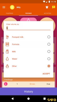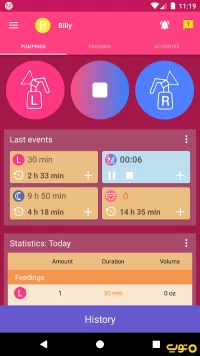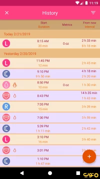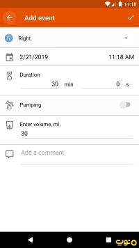 با این نرمافزار دوشیدن شیر برای نوزاد و شیر دادن با بطری را بر اساس تاریخ ثبت کنید.