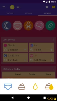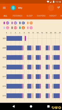 دیگر فعالیتهای نوزاد از جمله تعویض پوشک، برنامه خواب، قد و وزن و بسیاری دیگر از موارد را ثبت و ذخیره کنید.