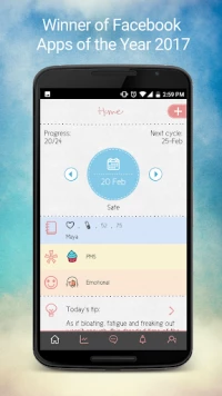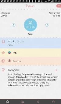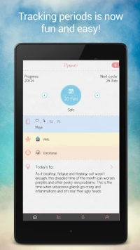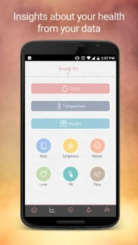 - مراحل پریود / قاعدگی در کدهای رنگی بصری - پیش بینی خودکار و دقیق تخمک گذاری / باروری - بارداری را با نکات مفید روزانه پیگیری کنید - جامعه کاربران و کارشناسان برای پاسخگویی به سوالات سلامت شما - پشتیبان گیری از داده ها به حساب و همگام سازی با چندین دستگاه - حفاظت از رمز عبور برای حفظ حریم خصوصی بالا - ورود آسان چرخه های گذشته - طول چرخه قاعدگی و طول جریان را تغییر دهید - پیش بینی برای شروع چرخه در ماه های آینده - گزینه هایی برای ثبت عشق، وزن و دما - گزینه هایی برای ثبت علائم و خلق و خوی - نمودار برای وزن و دما - مشاهده آمار و تاریخچه - یادآورهای حیاتی را در تقویم تلفن تنظیم کنید - ویجتی که هر روز خودکار به روز می شود - تم هایی برای مطابقت با سلیقه شما