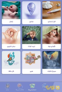 این اپلیکشن شامل مطالب خواندنی و مفید برای مادران در یک محیط تعاملی دو طرفه است