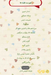 قصه های این برنامه از قصه های آموزنده و بعضا قرآنی استفاده شده است که برای مغز و هوش فرزند بسیار موثر می باشد.
