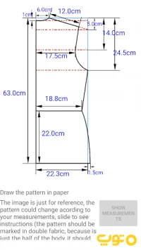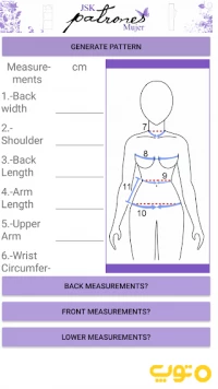 یک برنامۀ کاربردی که میتواند برای شما الگوی لباس مخصوص خودتان را تولید کند. فقط کافی است اندازههایی را که در تصاویر نشان داده میشود در برنامه وارد کنید.