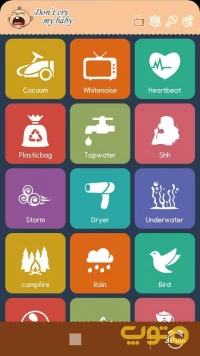 ۳- بچهها تا حدود ۱۰۰ روز بدو تولد گریه میکنند و آرام کردن آنها گاهی با جغجغه یا اسباببازیهای سوتکی ممکن است. برنامه دارای چهار جغجغه کارتونی بامزه با صداهای گوناگون است که با تکان دادن گوشی صدا میدهند.