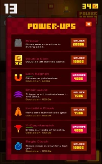با جمع کردن طلاها در زمین، میتوانید قابلیتهای کاراکتر بازی را ارتقا دهید. مثلاً سکه دوبرابر جمع کنید، آهن ربا را فعال کنید، بمبها را مهار کنید، نامرئی شوید و زمان را آهسته کنید.